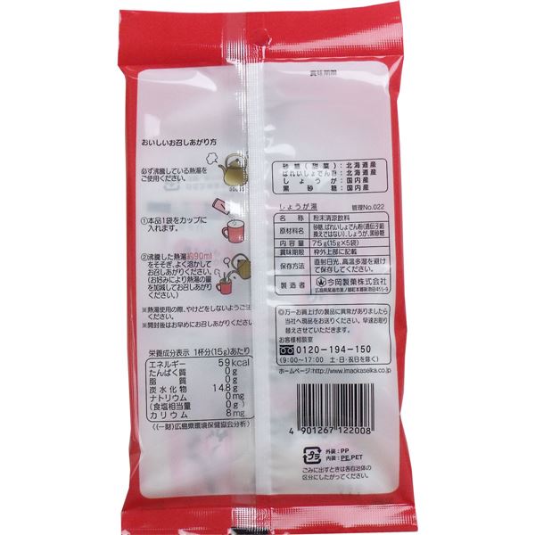 (砂糖:北海道、ばれいしょでん粉:北海道、しょうが:日本、黒砂糖:日本)●1杯分の分量を少なめに設定した商品です。